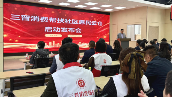 11月15日,晉勤集團科技公司在太原市杏花嶺區澗河街道機車社區黨群服務中心舉辦“三晉消費幫扶社區惠民云倉”啟動發布會,來自各行各業關注“消費幫扶”事業的工作者以及周邊社區居民到場參加。