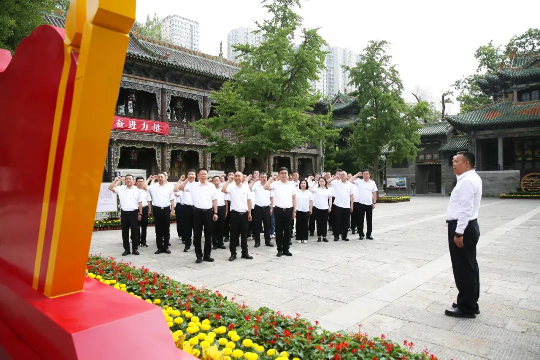 在展覽館廣場,集團黨委書記、董事長徐紹杰帶領黨員干部們,重溫入黨誓詞、追憶入黨初心。錚錚誓言,響徹廣場,更加堅定了為黨和人民事業奮斗終生、為晉勤集團改革發展擔當作為的信念與決心。