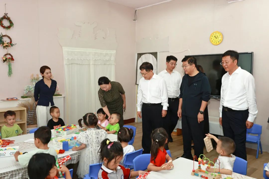 在局第一幼兒園,毛益民同志與屬地黨委政府負責同志共同為一幼新園址揭牌,參觀幼兒園環境設施,與教師親切交流。在塢城路幼兒園一分園,毛益民同志與省委黨校(山西行政學院)主持日常工作的副校(院)長宋惠民同志一起檢查幼兒園廚房、教室等設施設備,與孩子們互動溝通,為教師送上慰問信與祝福,表達對教育工作的崇高敬意。