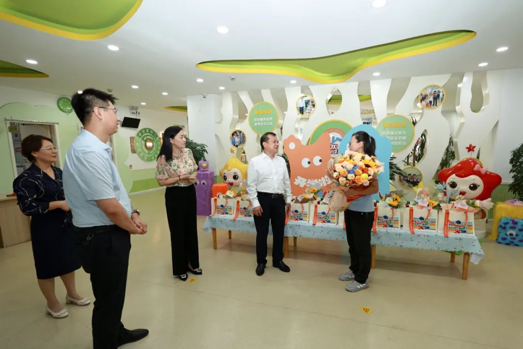 在其他幼兒園,局領導為優秀教師代表送去慰問信與鮮花,詳細了解新學期開學情況及教師情況,實地察看校園文化、特色課程開展與維修改造情況,與師生熱情交談并送上節日祝福。